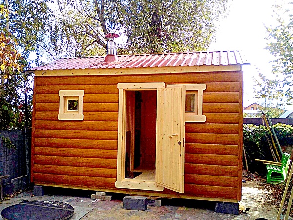 Самая компактная модель бани. Поместится на любом участке. Длина 4 метра.