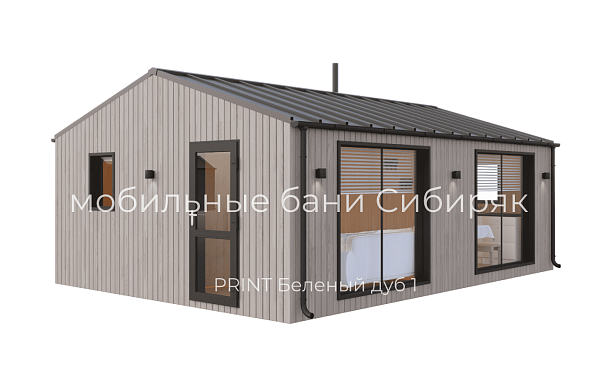 Полноценная дом баня в стиле "Барн" с туалетом, душевой, парной и комнатой отдыха. Состоит из двух соединяемых модулей. Каждый модуль доставляется на манипуляторе. На участке происходит соединение. Длина 7 м