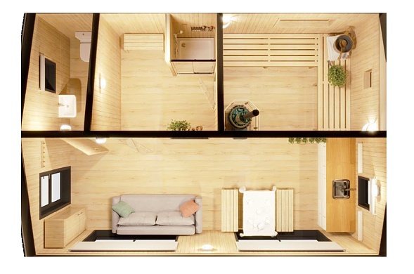 3-слойная каркаская конструкция обеспечивает долговечность и мобильность бани.
