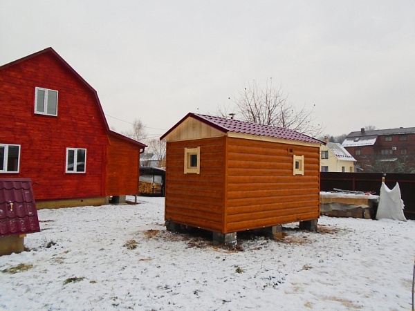 Самая компактная модель бани. Поместится на любом участке. Длина 4 метра.